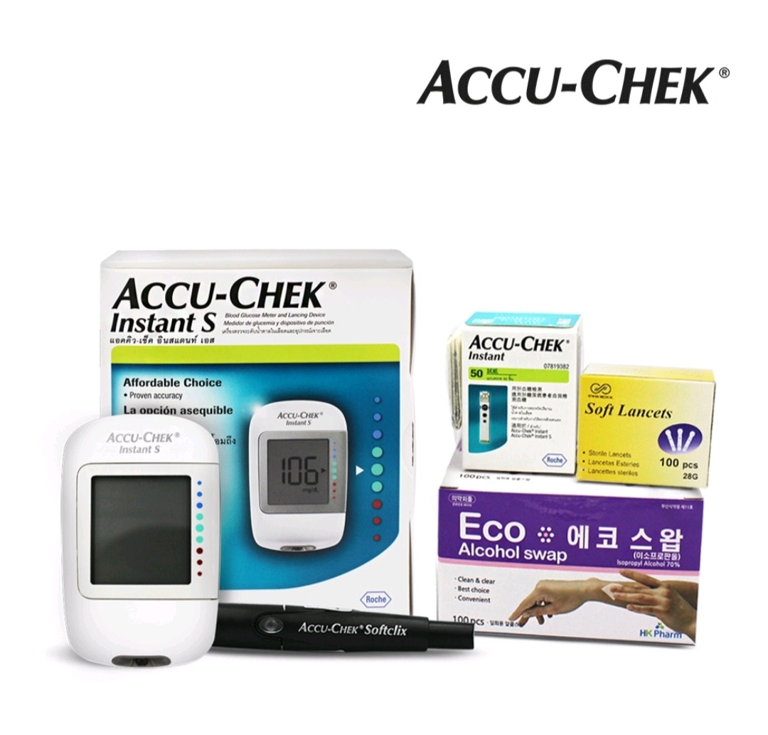 1. 로슈 아큐첵 인스턴트 혈당측정기 풀세트 [혈당계+시험지100매+침110개+솜100매] 혈당체크 당뇨측정기