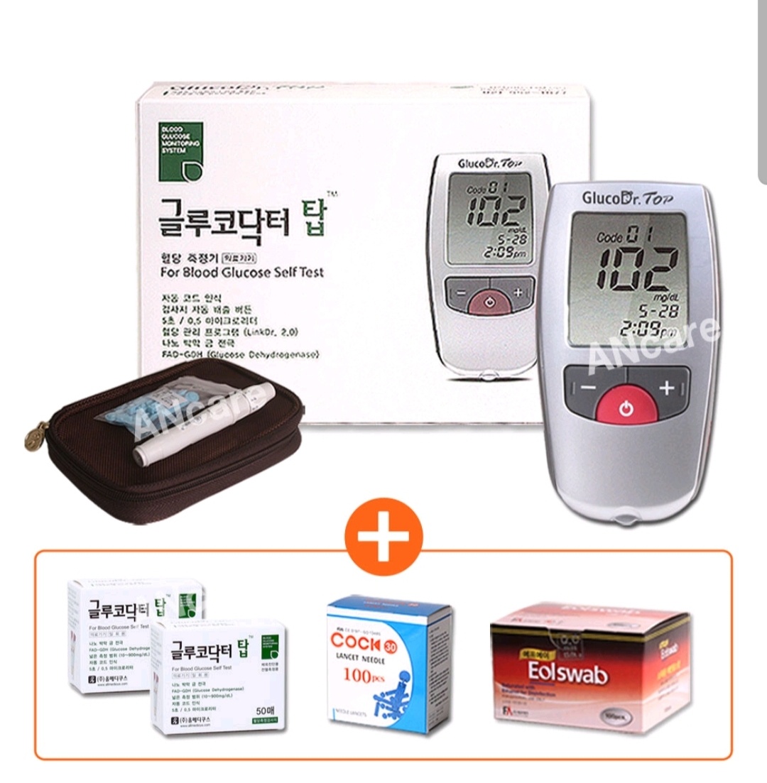 4. 글루코닥터 탑 AGM-4100 혈당측정기 풀세트 [혈당계+시험지100매+침110개+솜100매+파우치+채혈기]