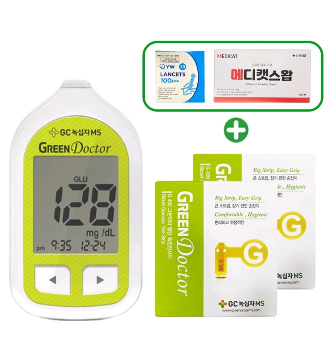 3. 녹십자엠에스 그린닥터 혈당측정기+시험지100매+멸균침110개+솜100매(메디캣 스왑) 혈당측정기 세트[메디캣 출고]