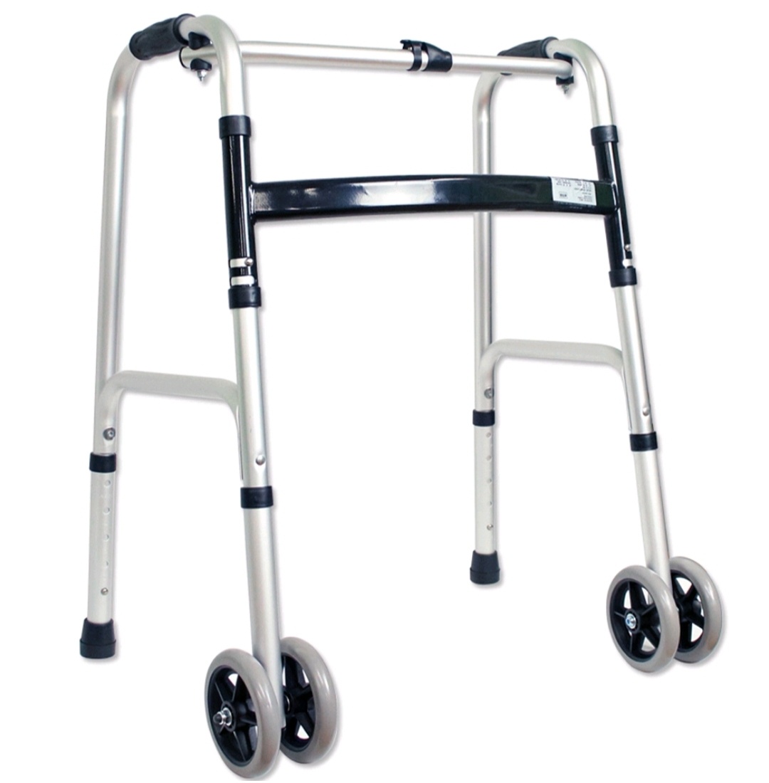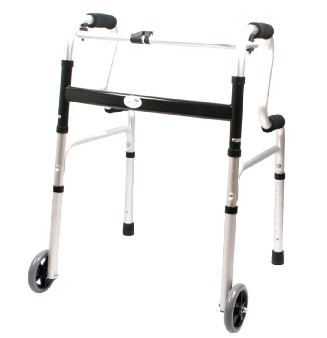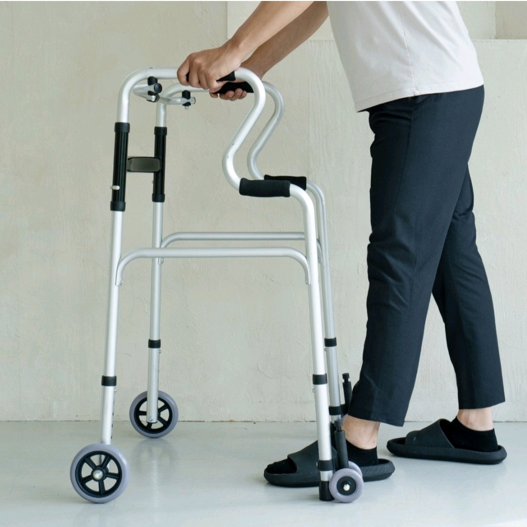 고령자 옥내용 접이식 1단 더블 바퀴 워커 이동 보행 보조기는 원터치 접이식 고정버튼을 이용해 제품을 한 번에 접거나 펼 수 있으므로 보관이나 사용이 편리하며 부드러운 고급 고무 재질을 사용해 미끄럼을 방지하고 사용자의 피로감을 줄였습니다. 사용자의 신체에 따라 높이에 따라 조절이 가능하여 5단계로 조절이 가능하여 신체 조건에 따라 사용이 가능하며 2개의 바퀴로 업그레이드 되어 보행중 안전성을 더욱 향상시켰습니다.