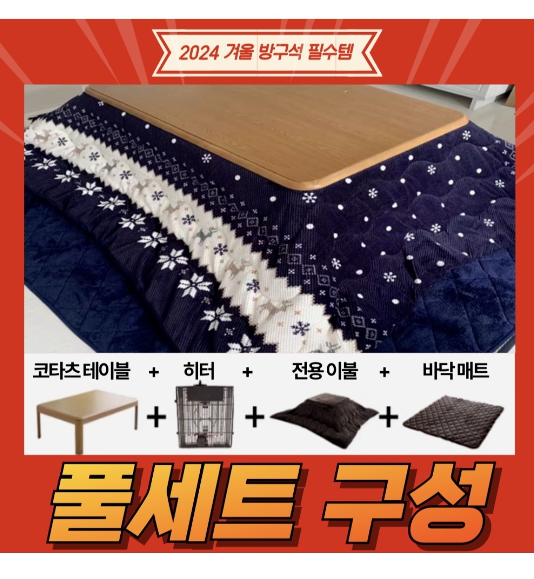 4. 히코테 아늑한 코타츠 이불 매트 테이블 히터 풀세트 겨울 난방 온열 거실 좌식 밥상