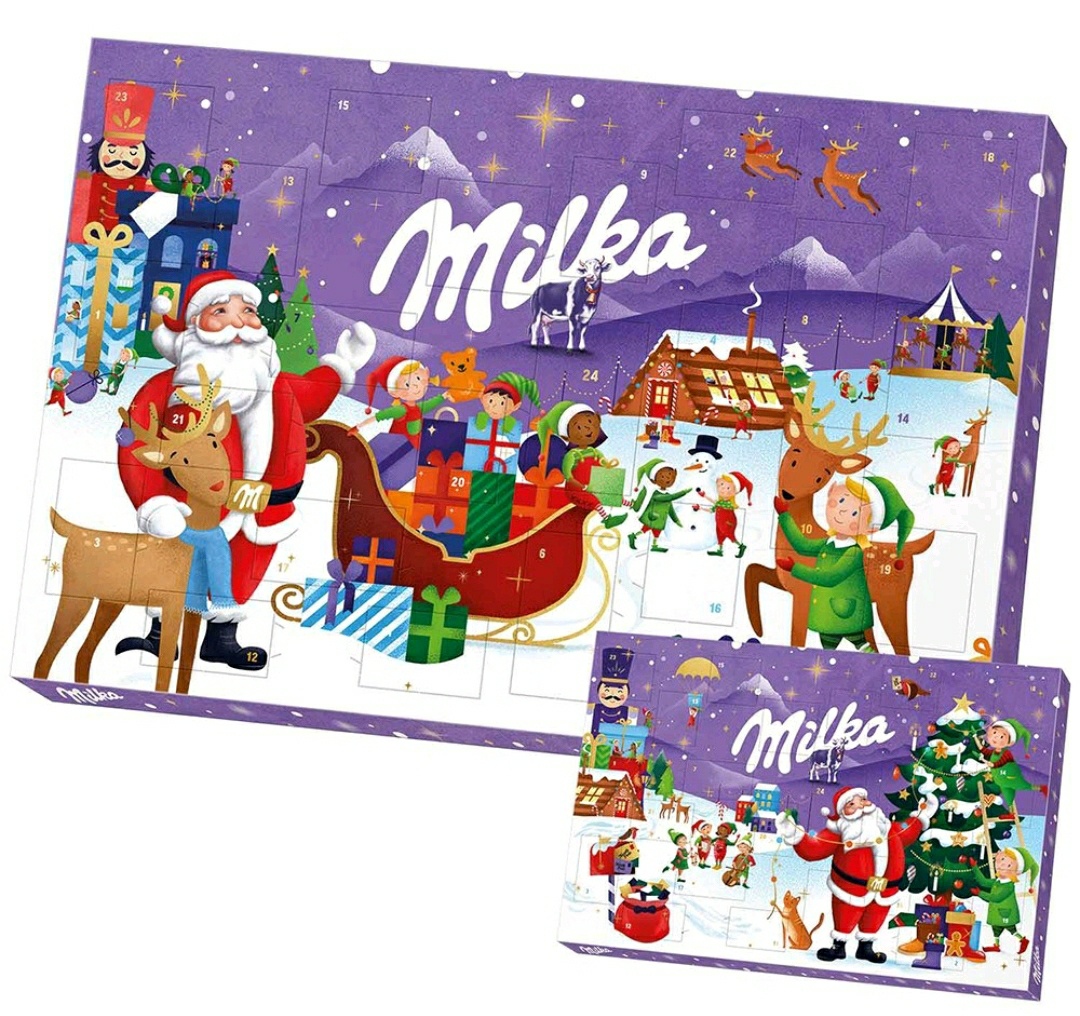 밀카 2024 어드벤트 캘린더의 외관은 크리스마스의 따뜻한 분위기를 잘 담아내며, 눈사람, 루돌프, 산타 같은 다양한 그림과 초콜릿 모양이 포함되어 있어 시각적인 즐거움을 제공합니다. 밀카 캘린더는 알파인 밀크 초콜릿으로 유명한 밀카 브랜드의 초콜릿이 24개의 칸에 들어 있습니다. 각 칸마다 크리스마스와 관련된 모양의 초콜릿이 들어 있어 매일 새로운 기분으로 초콜릿을 맛볼 수 있습니다.